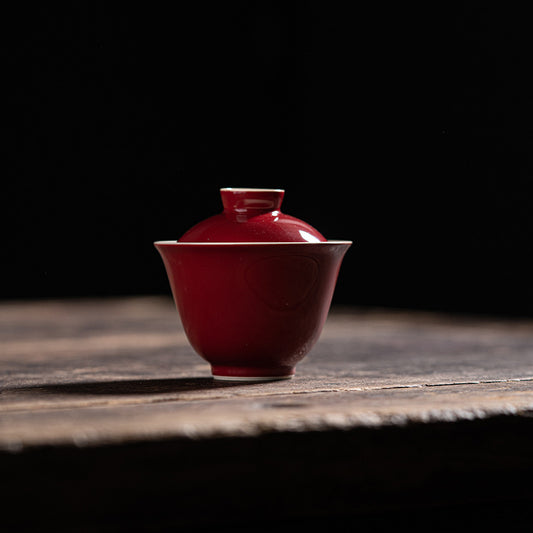 Premium Traditional Chinese Ceramic Gaiwan-Lang Hong (Red)